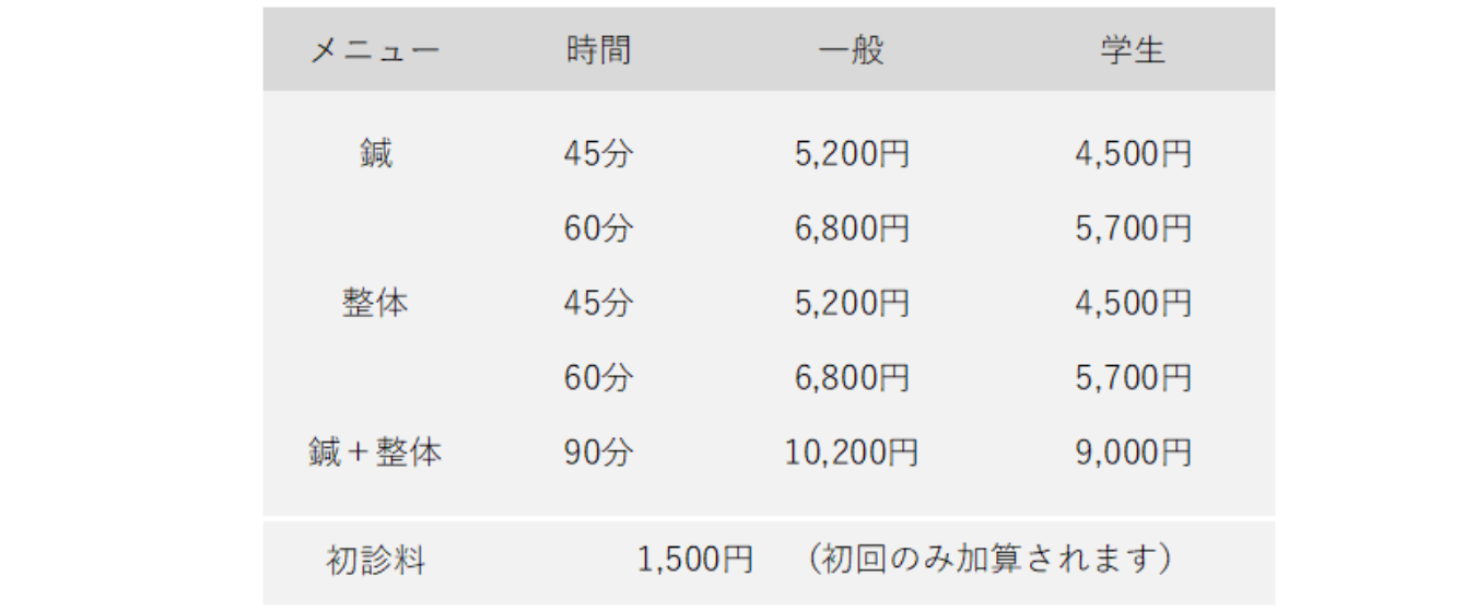 誠に心苦しい決断ではございますが、これからも施術の質を落とすことなく、皆様をサポートし続けたいという思いから、2026年4月1日より以下の通り価格を改定させていただきます。